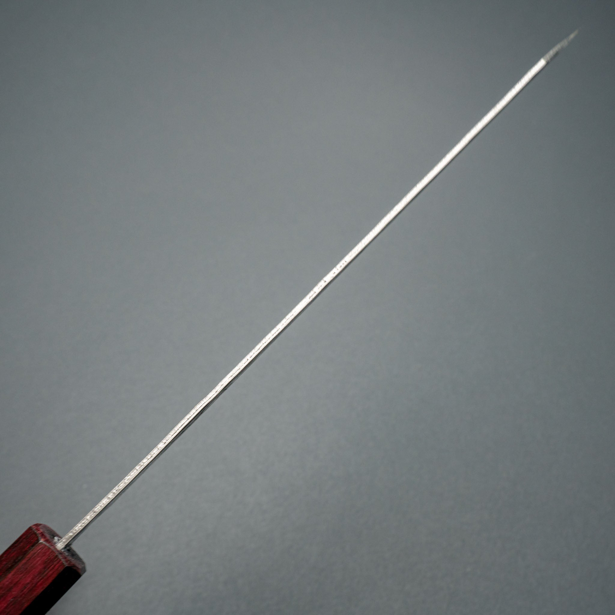 When the knife gradually becomes so dull that a definite sharpening is unavoidable, this is best done on a wet stone or a slow-moving sharpening machine. If you don't have the skills or the courage, drop it off with us and we'll take care of it.