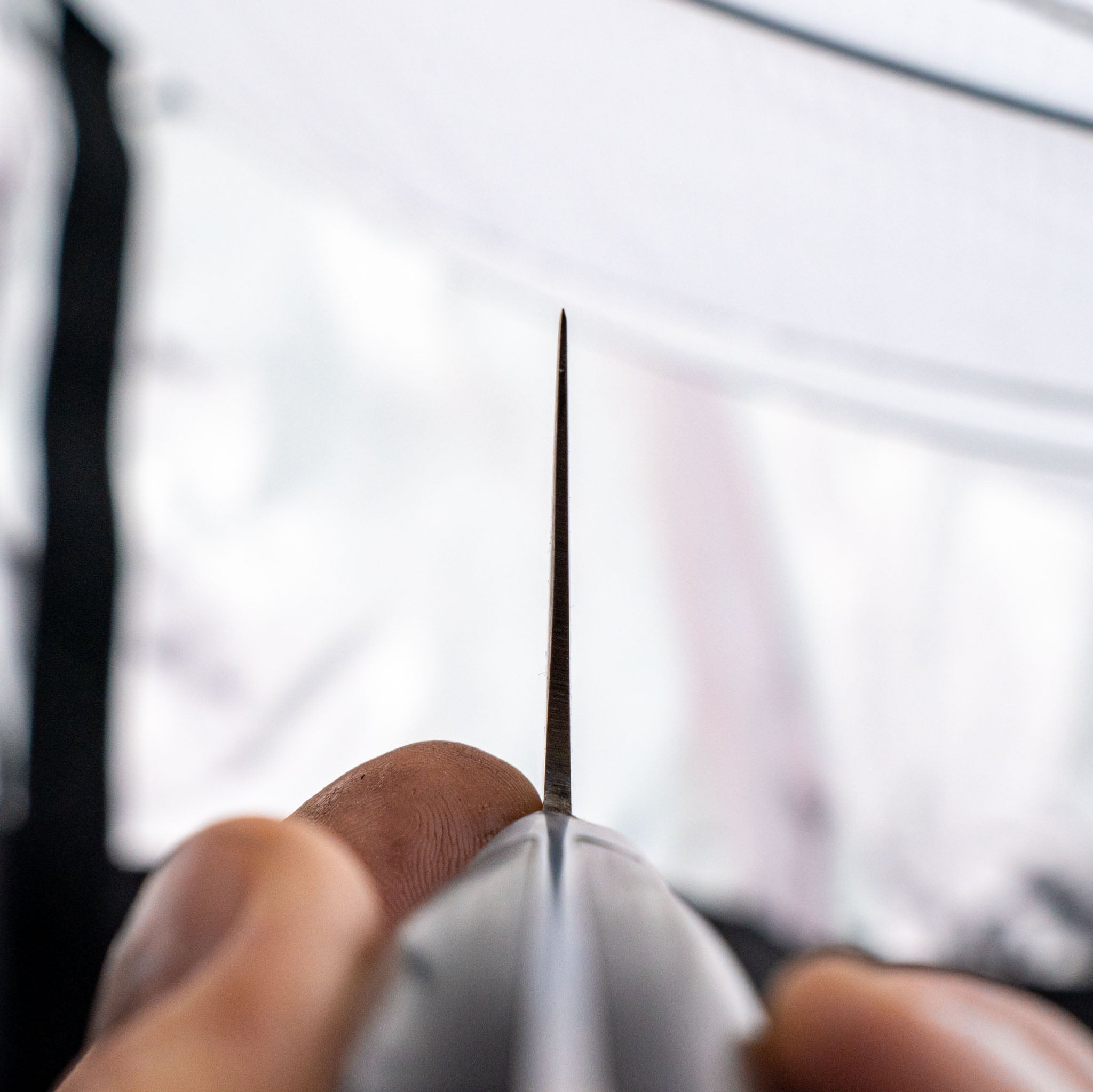 When the knife gradually becomes so dull that a definite sharpening is unavoidable, this is best done on a wet stone or a slow-moving sharpening machine. If you don't have the skills or the courage, drop it off with us and we'll take care of it.