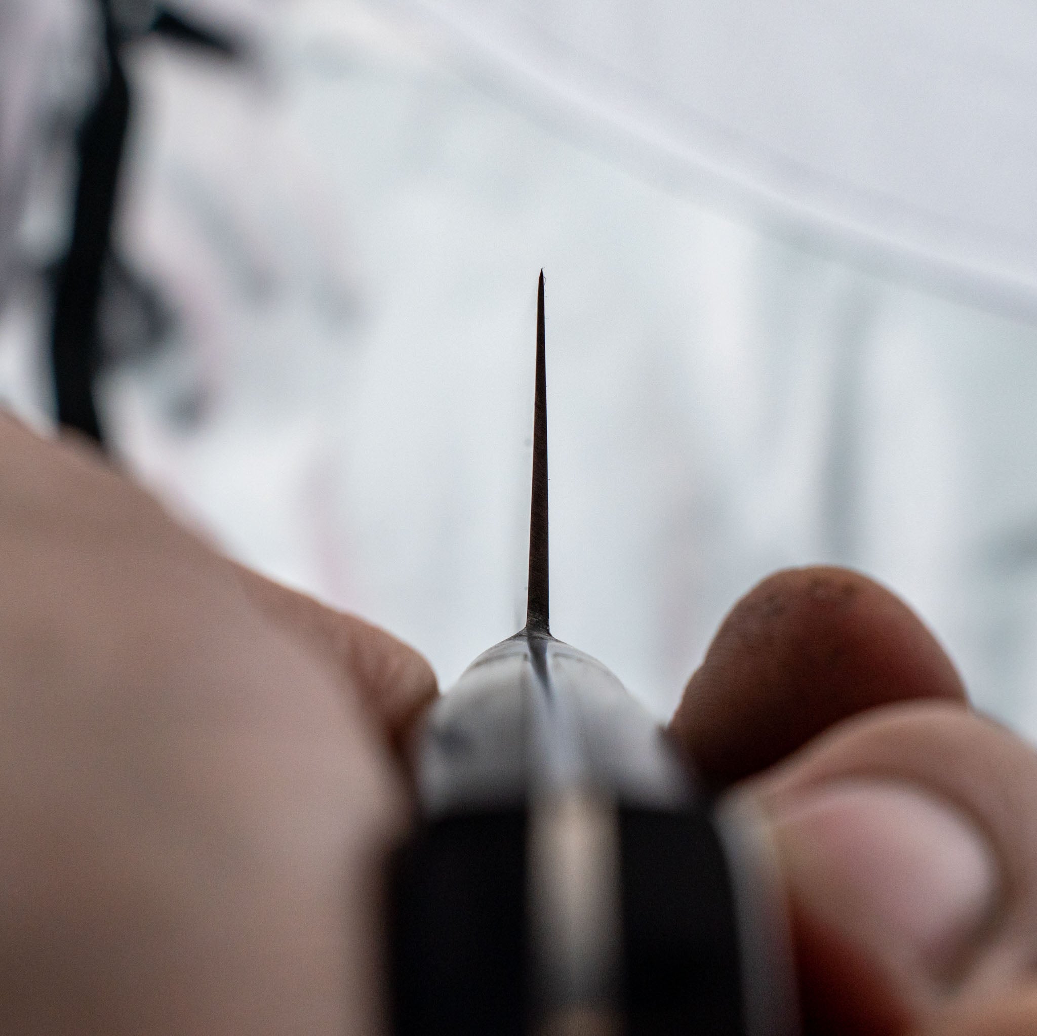 When the knife gradually becomes so dull that a definite sharpening is unavoidable, this is best done on a wet stone or a slow-moving sharpening machine. If you don't have the skills or the courage, drop it off with us and we'll take care of it.