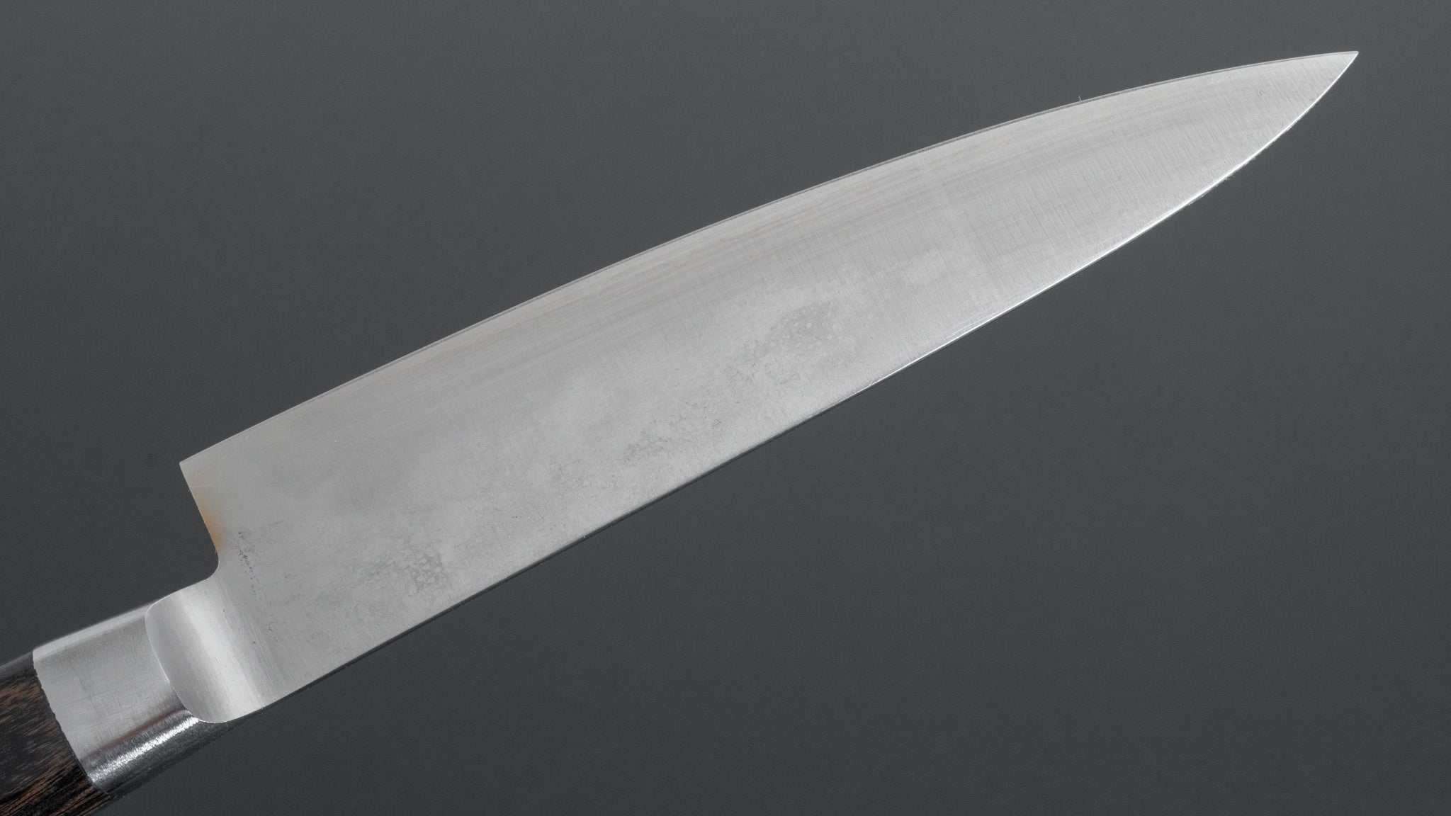 When the knife gradually becomes so dull that a definite sharpening is unavoidable, this is best done on a wet stone or a slow-moving sharpening machine. If you don't have the skills or the courage, drop it off with us and we'll take care of it.